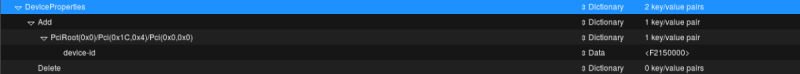 Salve a tutti, mi scuso in anticipo con lo staff se ho sbagliato sezione e prego gli stessi di modificarla nel caso. Ho deciso di scrivere questa mini guida per fare un po' di chiarezza su come abilitare il NIC I225-V Intel su macOS Catalina e Big Sur. In rete ci sono diversi tentativi di abilitare questa scheda LAN tramite patch via ACPI, kext come FakePCIID et similia, ma nessuno di questi mi ha convinto particolarmente, in particolare la soluzione con FakePCIID. Dunque, come procediamo? Innanzitutto occorre avere un'installazione vanilla (e sottolineo vanilla) di macOS funzionante e un programma in grado di estrarre i PciRoot come gfxutil/IORegistryExplorer/Hackintool/HackCheck. Di seguito la procedura per ricavare il PciRoot tramite i programmi elencati: - gfxutil: da terminale scrivere gfxutil e identificare la periferica LAN (di solito si chiama GLAN o RPxx.SL05) - IORegistryExplorer: è un po' più complicato ricavare il PciRoot path ma identificando la periferica LAN (che avrà un path del tipo PCI0.RPxx@1C,4/SLxx@0) lo si può convertire tramite questa formula: PciRoot(0x0)/Pci(0xAAAAA,0xBBBBB)/Pci(0x0,0x0) - Hackintool: aprire la sezione PCI, cliccare sulla colonna "IOReg IOName" e cercare "ethernet". Identificata la riga, cliccare col tasto destro e infine cliccare su "Copy DevicePath" - Hack Check: aprire la sezione DeviceProperties e identificare la periferica LAN. Una volta fatto ciò, occorrerà apportare le seguenti modifiche al config.plist di OpenCore (sry ma non digerisco Clover): Creare un figlio in config.plist/DeviceProperties/Add contenente il PciRoot path della scheda LAN e una proprietà di tipo DATA chiamata "device-id" e contenente F2150000, come illustrato in figura: n.b. modificare di conseguenza il PciRoot path Inoltre, aggiungere in config.plist/Kernel/Patch la seguente patch: <dict> <key>Arch</key> <string>Arch</string> <key>Base</key> <string>__Z18e1000_set_mac_typeP8e1000_hw</string> <key>Comment</key> <string>i225-V Patch</string> <key>Count</key> <integer>1</integer> <key>Enabled</key> <true/> <key>Find</key> <data>8hUAAA==</data> <key>Identifier</key> <string>com.apple.driver.AppleIntelI210Ethernet</string> <key>Limit</key> <integer>0</integer> <key>Mask</key> <data></data> <key>MaxKernel</key> <string></string> <key>MinKernel</key> <string>20.4</string> <key>Replace</key> <data>8xUAAA==</data> <key>ReplaceMask</key> <data></data> <key>Skip</key> <integer>0</integer> </dict> N.B. questa patch funziona da Catalina fino a Big Sur 11.3 ed è molto importante che il Count sia impostato su 1. N.B. per macOS Big Sur aggiungere ai boot-arg dk.e1000=0. Per comodità allego un file .plist contenente tutte le modifiche da integrare al config.plist di OpenCore Spero sia di vostro gradimento questa mini guida config.zip