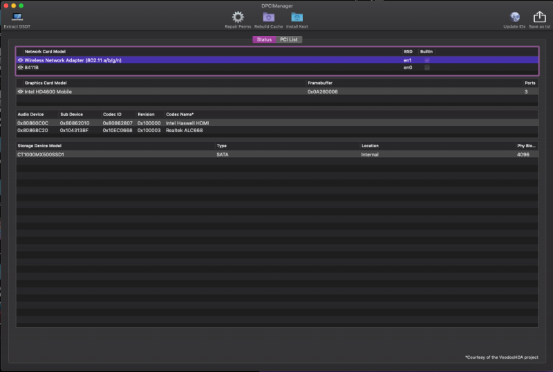 Quelle: support.hp.com HP Probook 440 G5 Inel Core I7 8550U Intel UHD620 ( Metal 3 - UHD617 ) 16GB Arbeitsspeicher 1TB CT1000P5SSD8 Crucial NVMe Conexant CX 8200 Audio Intel ac 8265 WiFi Realtek RTL8111HSH ETH0 macOS 13 Ventura Beta 8 SMBIOS MacBookPro14,1 OpenCore Version 0.8.4 ✅ USB 3 und C ✅ HDMI ( Audio über HDMI ) ✅ Dual Monitor ✅ Clamshell Mode ✅ Audio Output Speaker Headphone - Micro und Line in ✅ WebCam + Mikrofon ✅ 1Gbit Ethernet ✅ Wifi ✅ Bluetooth mit USB IOGEAR Gbu521 W6 ✅ OpenGL, OpenCL, Metal 3, HVEC, H264 ✅ Shutdown ✅ Restart ✅ Hibernate/Sleep/Wake Con Turbo Boost Switcher silenzioso Ho riacceso il Turbo Boost e ho relegato il traino in un cassetto Silenzioso e scattante La WLAN con Intel ac 8265 integrato funziona sotto Ventura con il Kext 2.2.0 Alpha AirportItlwm.kext 2,4GHZ e 5GHZ al router AX Intel UHD Graphics 620: Chipsatz-Modell: Intel UHD Graphics 620 Typ: GPU Bus: Integriert VRAM (dynamisch, maximal): 1536 MB Hersteller: Intel Geräte-ID: 0x5916 Versions-ID: 0x0007 Metal-Unterstützung: Metal 3 Displays: DELL S2722DC: Auflösung: 2560 x 1440 (QHD/WQHD - Wide Quad High Definition) UI sieht aus wie: 2560 x 1440 @ 75.00Hz Framepuffertiefe: 30-Bit Farbe (ARGB2101010) Display-Seriennummer: Hauptdisplay: Ja Synchronisierung: Aus Eingeschaltet: Ja Rotation: Unterstützt L'unica cosa strana è che l'UHD620(UHD617) KabyLake-R in 12.6 come Metal GPUFamily macOS 2 13 Beta 8 come Metal 3. Dopo il riavvio o l'accensione quando era in stato di sospensione, l'avviso RTC è ancora presente. Per questo, dovrei provare alcune regioni RTC con valori esadecimali in Open Core secondo le istruzioni e inserirle..... https://dortania.github.io/OpenCore-Post-Install/misc/rtc.html#finding-our-bad-rtc-region EFI-HP440G5-OC084-VenturaBeta7-iMac141-NoSerial.zip AirportItlwm-Ventura-v2.2.0-DEBUG-alpha-bb86d9f.zip