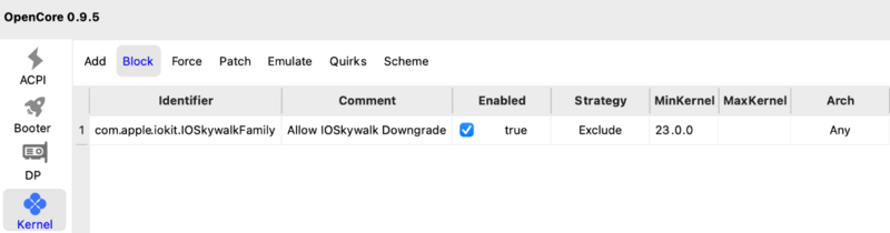 With the definitive release of the new Apple operating system, many users have experienced first hand the complete loss of Wi-Fi and some Apple services such as (Airdrop, Imessage, Facetime, photobooth) especially for Apple users with iPhone mobile phones the problem is annoying as you lose some conveniences that having an Apple ecosystem allowed in previous OS up to macOS Ventura. A tool, OCLP, or OpenCore Legacy Patcher in full, comes to our aid. It is a tool designed for "original" Macs, but which also comes in handy for those who use Hackintosh systems. There are important compromises to accept (it is not the job of this post to explain them), but once accepted it is possible to use the wifi cards that were previously recognized also on the latest Apple OS To date you must use the "nightly" version of OCLP as the release is not yet available with Sonoma support, below is the link: OCLP (latest) Below are the steps to prepare our system for the installation of OCLP: 1) install macOS Sonoma by updating kexts and bootloader to the latest versions 2) edit the config.plist and set SecureBootModel to Disabled* (in misc/Security section of your config.plist) 3) block com.apple.iokit.IOSkywalkFamily 4) add the kexts and a dependency in the OC's appropriate folder and declare them in the config.plist as shown in the pictures below: IOSkywalkFamily.kext IO80211FamilyLegacy.kext IO80211FamilyLegacy.kext/Contents/PlugIns/AirPortBrcmNIC.kext 5) use a soft unlock for SIP**: 03080000 6) use a boot-arg for AMFI***: amfi=0x80 or use AMFIPass.kext and -amfipassbeta boo-targ*** 6 bis) Now it is possible to use only amfipass.kext (1.4.x release or greater ) and avoid to use any bootargs 7) if you also use different operating systems remember to set the min kernel for the block and kext in the appropriate section of the config.plist * After OCLP is installed is possible to set SecureBootModel as you like ** After OCLP is installed is possible to set SIP to 0008000 (sip Enabled 0x800) *** it is only possible to use a kext and a bootarg for this step and this step could solve crash in some apps like Dropbox , Firefox and Whatsapp (https://macos86.it/topic/6463-oclp-il-wi-fi-è-tornato-in-macos-sonoma/?do=findComment&comment=143907 ) Example for the modification to be made for point 3): Example for the modification to be made for point 4): After copying the two kexts IOSkywalkFamily.kext and IO80211FamilyLegacy.kext, declare them in the config with the order shown in the photograph (the third is inside the main kext) Example for the modification to be carried out for points 5) and 6): boot-arg amfi0x80 e csr-active-config 03080000 Once these changes have been made, you need to restart OSX At the OpenCore menu it is strongly recommended to reset NVRAm and check that SIP is disabled at this point. After logging in it is now possible to launch OCLP (taken from the link posted just above in this thread). OCLP adds a service that requires acceptance. You will have the options available in the image below: Click on Post-Install Root Patch and then click on start root patching: OCLP will ask to be relaunched as root, enter your password and let the software make its changes in a few seconds OCLP will ask to restart and if everything went well the next restart you will be able to enjoy your fully functional wifi! 🙂 Remember always to reset NVRAM when some modifies is done in OCLP app or config.plist (related to OCLP options) For more informations about OCLP: kexts.zip