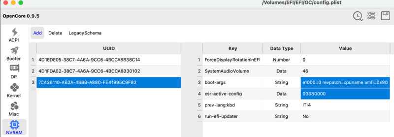 Nota Bene Con l'uscita definitiva del nuovo sistema operativo Apple, molti utenti hanno verificato sulla propria pelle la completa perdita del Wi-Fi e di alcuni servizi apple come (Airdrop,Imessage, Facetime, photobooth) soprattutto per utenti Apple con cellulari Iphone il problema risulta fastidioso in quanto si perdono alcune comodità che avere un ecosistema Apple consentiva nei precedenti OS sino a macOS Ventura. Ci viene un aiuto uno strumento, OCLP, per esteso OpenCore Legacy Patcher. E' uno strumento pensato per i mac "originali", ma che viene in aiuto anche per chi utiizza sistemi Hackintosh. Ci sono dei compromessi importanti da accettare (non e' compito di questo post spiegarli), ma una volta accettati e' possibile utilizzare le schede wifi che prima erano riconosciute anche sull'ultimo OS di Apple Ad oggi si deve utilizzare la versione "nightly" di OCLP in quanto la release non e' ancora disponibile con il supporto Sonoma, di seguito il link: OCLP - ultima versione Nota Bene Se si opta per il bootarg amfi=0x80, potrebbero non funzionare alcune app come Whatsapp web, dropbox o Firefox. Per ovviare si utilizza il meodo descritto nel punto 6b. Ora e' possibile utilizzare esclusivamente il kext Amfipass.kext dalla versione 1.4.x e superiori senza utilizzare nessun boot-arg) Di seguito i passaggi da fare per preparare il nostro sistema all'installazione di OCLP: 1) installare macOS Sonoma aggiornando kexts e bootloader alle ultime versioni 2) modificare il config.plist ed impostare SecureBootModel Disabled* (nella sezione misc/Security del proprio config.plist) 3) bloccare com.apple.iokit.IOSkywalkFamily 4) aggiungere i kexts e una dipendenza nella apposita cartella e dichiararli nel config.plist come da immagine: IOSkywalkFamily.kext IO80211FamilyLegacy.kext IO80211FamilyLegacy.kext/Contents/PlugIns/AirPortBrcmNIC.kext 5) utilizzare uno sblocco soft per SIP**: 03080000 6) utilizzare un boot-arg per AMFI (6a) oppure kext e boot-arg come in 6b***: a) amfi=0x80 b) oppure al posto di questo bootarg si mette il kext AMFIPass.kext ed il boot-arg -amfipassbeta**** 6 bis) Utilizzare il kext Amfipass.kext 1.4.x ed eliminare se usati i precedenti boot args (amfi=0x80 e -amfipassbeta) 7) se si usano anche sistemi operativi diversi ricordarsi di impostare il min kernel per il block ed i kext nella apposita sezione del config.plist * Dopo aver installato OCLP e' possibile ripristinare il valore di SecureBootModel come si desidera ** Dopo aver installato OCLP e' possibile impostare SIP a 00080000 (Sip enabled) *** e' possibile usare in alternativa un kext ed un boot-arg per questo punto (punto 6b) AMFIPass.kext e -amfipassbeta boot-arg)) **** utilizzando la versione 1.4.x o superiori di AMFIPass.kext e' possibile rimuovere il bootarg -amfipassbeta (https://macos86.it/topic/6463-oclp-il-wi-fi-è-tornato-in-macos-sonoma/?do=findComment&comment=143907 ) Esempio per la modifica da eseguire per il punto 3): Esempio per la modifica da eseguire per il punto 4): Dopo aver copiato i due kext IOSkywalkFamily.kext e IO80211FamilyLegacy.kext dichiararli nel config con l'ordine mostrato nella fotografia (il terzo e' all'interno del kext principale) Esempio per la modifica da eseguire per i punti 5) e 6): boot-arg amfi0x80 e csr-active-config 03080000 fatte queste modifiche e' necessario riavviare OSX Al menu di OpenCore e' fortemente consigliato di resettare NVRAm e controllare che SIP sia a questo punto disabilitato. Dopo aver fatto il login e' ora possibile lanciare OCLP (preso dal link postato poco sopra in questo thread). OCLP aggiunge un servizio che necessita di accettazione. Si avranno le opzioni disponibili nella immagine qui sotto: Cliccare su Post-Install Root Patch per poi cliccare su start root patching: OCLP chiederà di essere rilanciato come root, inserire la propria password e lasciare che il software compia le sue modifiche in pochi secondi OCLP chiederà di riavviare e se tutto e' andato bene al prossimo riavvio potrete godere del vostro wifi pienamente funzionante! 🙂 kexts.zip Per maggiori informazioni su OCLP per macOS Sonoma