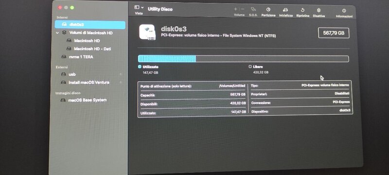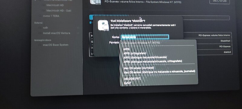1. Ho un problema ho un disco dove ho due partizioni su una ventura e sull'altra win, come devo fare per togliere win e installare MacOS, come devo inizializzare il disk0s3 dove sta win? Ho provato con Apfs ma non funziona, non vorrei fare casino. Grazie.