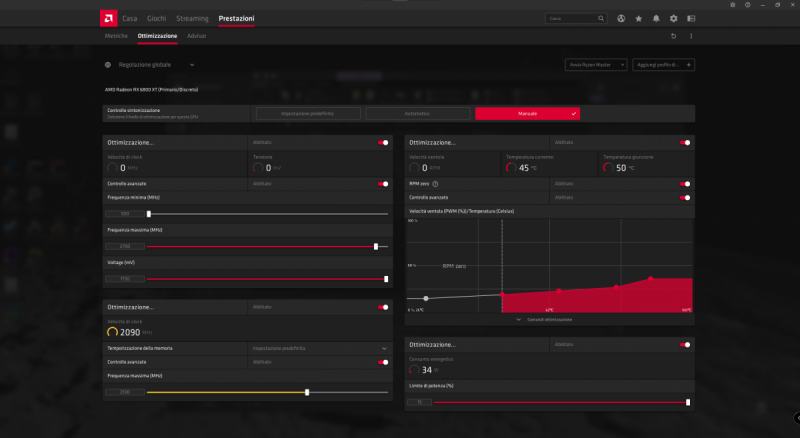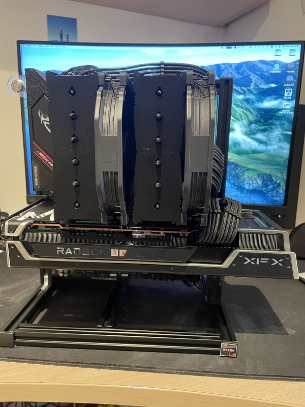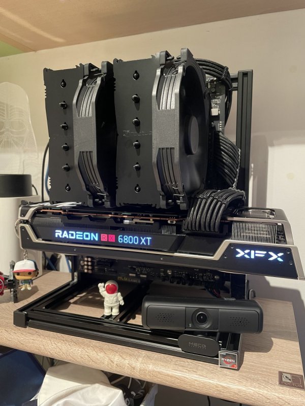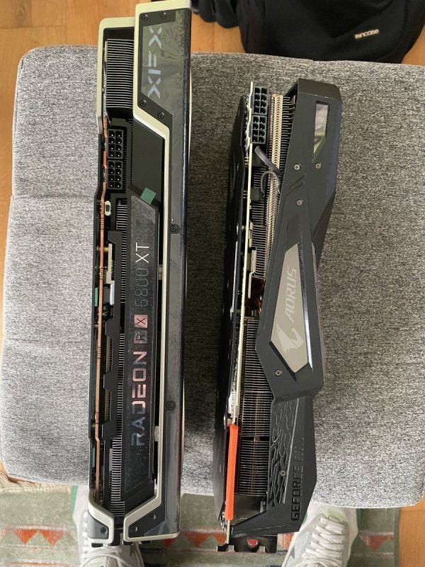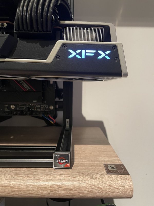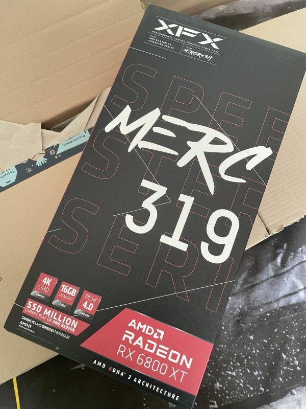 Ciao a tutti, come alcuni di voi sapranno, se seguono la sezione hardware del Discord del forum, l'altro giorno ho avuto modo di recuperare una XFX Speedster MERC319 Radeon RX 6800XT della quale vado a postare qua sotto i benchmark effettuati sotto la guida del magico duo @fabiosun e @tomnic. Sarò breve: La scheda è enorme ma allo stesso tempo massiccia, si presenta solida e ben costruita. In confronto alla mia precedente 2080s Aorus è enorme e per questo ho dovuto anche modificare un pò la disposizione dei componenti del mio pc ryzen (si non parliamo di Hackintosh.. per ora 🙄 riducendo tutto ai minimi termini, togliendo ventole che ora sono inutili. Pregi: - silenziosità durante il carico di lavoro - ampio margine di overclock - qualità costruttiva Difetti: - per ora nessuno riscontrato. Ho effettuato overclock abbastanza spinto e la scheda si è comportata bene trovando un buon compromesso di bilanciamento quasi al limite delle sue possibilità di overlock. Di seguito partono i vari spoiler con i test che ho effettuato e le foto: Foto della build: Test effettuati con configurazione standard: Test configurati in Overclock: Per i più curiosi, il pc sulla quale viene montata questa 6800xt è la build che uso per il gaming e monta: - Ryzen 7 3700X - 32gb ddr4 Patriot Viper - Asus Rog Strix B550 F - 512GB Nvme per win10 - 1TB Nvme per dati - 850W 80+ Gold Antec Chiaramente se in un futuro rdna2 verrà supportato da OSX, potrà essere convertita in Hack on OC e relativo SSDT per B550 Nel complesso, per ora posso solo confermare le ottime impressioni e recensioni che si trovano in rete di questa XFX Merc 319 6800XT.