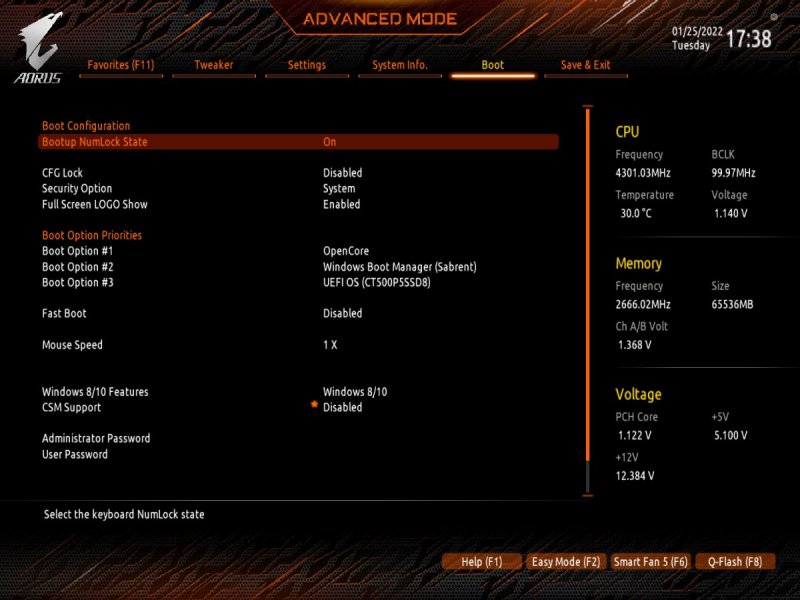 Buongiorno a tutti, posto qui le mie riflessioni e la mia mini-guida all’installazione di BigSur / Monterey su scheda madre Z390 Gigabyte Aorus Pro (guida compatibile anche con Aorus PRO WIFI , previa disabilitazione wifi non compatibile con OSX in quanto chipset intel) Cominciamo…. In questa guida, sono stati utilizzati i seguenti componenti e soprattutto nessuno è stato maltrattato! : Mainboard: Gigabyte Aorus Pro rev1,0 chipset z390 bios f12l CPU: Intel i5 9600k RAM: Ballistix Sport LT (4x16gb) Video: AMD Sapphire RX580 Nitro+ CPU Cooler: iTek Liqui v2 240 (modificato) NVMe: CRUCIAL P5 500gb Case: Deepcool Matrex 70 WiFi/BT: Abwb 802.11AC BT4.0 chipset BCM943602CS pci-e Vari SSD e HDD che però a noi non interessano... Hardware: EFI OpenCore 0.8.0 con DevirtualiseMmio OFF (consigliato profilo bios in guida) COSA FUNZIONA: • Porta Ethernet • Audio • WiFi (con il modulo utilizzato in questa guida OOB installato nella PCI-E più in basso) • SSD Trim • USB 3.0 , USB 2.0 e USB-C (USB-C interna DISABILITATA con mappatura) • AirDrop (con il modulo utilizzato in questa guida OOB installato nella PCI-E più in basso) • iCloud • Accelerazione Hardware h264/HEVC • iMessages • Facetime • Sleep e Wake • Sleep e Spegnimento tramite pulsante Power • Handoff • Continuity • Netflix 1080p/4k Safari (funzionante SOLO su efi iMacPro1,1 e MacPro7,1) • NVRAM • AppleTV 1080p/4k (funzionante SOLO su efi iMacPro1,1 e MacPro7,1) COSA NON FUNZIONA: • Sidecar (funzionante SOLO su efi iMac19,1) • Null’altro (ditemi voi in caso!) OCCORRENTE: • Chiavetta USB installazione Big Sur / Monterey (BETA) con EFI ottimizzata (in allegato) • Una Aorus PRO Z390 con bios f12 • Una RX580/590 • Un monitor xD • Un mouse e una tastiera LoL Prepariamo la chiavetta di installazione: Per fare questo, o emulate osx su macchina virtuale da Windows o usate un vero Mac/Hack. In questo Forum , è presente la guida alla creazione Vanilla (no Vanilla Ice, gli anni 80 son finiti ahimè)… seguite quella! …..Dopo questa bruttissima battuta, alla fine della creazione della vostra chiavetta di installazione, dovrete copiare la cartella EFI allegata alla guida. Non preoccupatevi, la cartella che scaricherete, non è nient’altro che una EFI di OpenCore opportunamente modificata per la nostra scheda madre e per la nostra RX580, completa di SSDT e di mappatura USB effettuata come riportato in foto allegata... IMPOSTAZIONI BIOS: (impostazioni basate su versione f12k o successive – meglio aggiornare almeno a f12 - bios f12 allegato al fondo della discussione) Per prima cosa, una volta assemblato il tutto, facciamo partire la macchina. Entriamo nel BIOS (con il tasto CANC) Carichiamo le impostazioni di default, riavviamo e rientriamo nuovamente nel BIOS A questo punto, andiamo a cliccare su “Advanced Mode” per attivare l’interfaccia completa. Inseriamo le seguenti impostazioni, lasciando TUTTO il resto di default: • Boot -> Boot -> CFG Lock -> Disabled • Boot -> Windows 8/10 Features -> Windows 8/10 (Attenzione, questo deve essere su Other SOLO se usate sistemi Linux con bootloader grub proprietario. Se usate OpenCore, DEVE essere Windows 8/10) • Boot -> CSM Support -> Disabled • Tweaker -> Extreme Memory Profile (X.M.P.) -> Profile1 • Tweaker -> System Memory Multiplier -> DDR4-2666 (solo se avete memorie con profilo superiore ai 2666 ...poi vi spiego****) • Tweaker -> Advanced CPU Settings -> VT-d -> Disabled • Settings -> IO Ports -> USB Configuration -> Legacy USB Support -> Enabled • Settings -> IO Ports -> USB Configuration -> XHCI Hand-off -> Enabled • Settings -> IO Ports -> USB Configuration -> USB Mass Storage Driver Support -> Enabled • Settings -> IO Ports -> USB Configuration -> Port 60/64 Emulation -> Disabled • Settings -> IO Ports -> Initial Display Output -> PCIe 1 Slot • Settings -> IO Ports -> Internal Graphics -> Disabled (Per smbios iMacPro1,1 ;;; invece impostate su "Enabled" e con memoria settata a 64MB per smbios iMac19,1) • Settings -> IO Ports -> DVMT -> MAX • Settings -> IO Ports -> Aperture Size -> 256MB • Settings -> IO Ports -> Above 4G Decoding -> Enabled • Settings -> IO Ports -> Resize BAR Support -> Disabled (Mettere su "Auto" se desiderate utilizzare le funzionalità Resizable Bar con schede video serie 5xxx 6xxx - con schede Polaris è irrilevante e non serve a nulla) • Settings -> Miscellaneous -> Intel Platform Trust Tecnology (PTT) -> Enabled • Settings -> Miscellaneous -> Software Guard Extensions (SGX) -> Disabled • Settings -> Miscellaneous -> Trusted Computing -> Disabled (Enabled se vogliamo utilizzare Windows 11) • Settings -> Platform Power -> Platform Power Management -> Disabled • Settings -> Platform Power -> ErP -> Enabled • Settings -> Platform Power -> RC6(Render Standby) -> Enabled • Save & Exit → Save & Exit Setup Avendo io il bios settato in lingua inglese, ho riportato tutti i menu scritti in inglese! Ma comunque vi posto le foto per far rendere l’idea di cosa impostare! Bios: Non resta che partire con l’installazione di OSX vera e propria! Avviate l’installazione normalmente seguendo i canonici passi. L’unico accorgimento è, una volta installato il tutto, utilizzare il vostro editor plist preferito , (possibilmente NON textedit) e modificare i dati "sensibili" (seriale , mlb , smuuid , mac address**). iMac19,1 è il più "consono" per i processori CoffeeLake e la nostra scheda madre ma per determinate situazioni, sono meglio iMacPro1,1 e MacPro7,1 (io uso quest'ultimo). In alternativa, se non si possiede una scheda video PCIe, si usa iMac19,1 UHD630 che prevede l'utilizzo della scheda video integrata. **Nella sezione “PlatfotmInfo -> Generic” "ROM" , dovrete inserire il MAC Address della vostra scheda di rete con l’esclusione dei “ : “ esempio, Mac address: D0:81:7A:CF:13:B2, diventerà D0817ACF13B2 . Questa precauzione, farà funzionare senza problemi, dopo ave