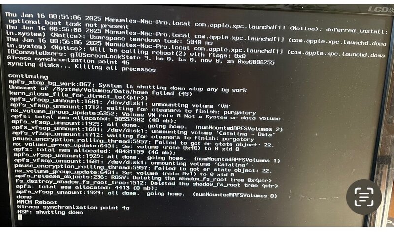 Buongiorno a tutti, chiedo aiuto per sistemare un’installazione di MAC OS su un vecchio hardware Asus P6T-SE chip i7-950 Tylersburg X58 Intel Nehalem e scheda grafica AMD Radeon 5700 HD con Opencore v1.0.3 Dopo numerose prove e ore di studio (sono un appassionato ma anche un neofita) ho installato OS Catalina su questo hardware con SMBIOS MacPro6,1. Premetto che è un BIOS Legacy: VT-d disattivato CSM non presente CFG Lock non presente Ho usato Openduet per effettuare il bridge fra Legacy e Uefi (funzionante) e LogoutHook per salvare le variabili NVRAM (funzionante almeno credo) ho testato la nvram e mi riporta i valori boot-args e crea il file nvram.plist. L’OS riconosce il disco ssd, la ram (18gb), l’audio, la scheda di rete, le usb 2 e la scheda grafica come 5770 e non 5700 senza accelerazione (nvram 1mb). Il problema principale è il power management. Già durante l’installazione ho dovuto effettuare i reboot manualmente. Alcune volte fallisce anche lo shutdown ma il reboot non funziona proprio. Dovrei generare degli SSDT personalizzati per sistemare il power management ? Per risolvere il problema della scheda video (mancata accelerazione) ho trovato un tool “Legacy-Video-patch” che dice che posso portare la scheda a lavorare al 60% (massimo su OS Catalina non superiori), ma devo ancora provare. Il mac mi serve per fare musica quindi mi basterebbe avere una risoluzione decente. Ho pensato anche di installare OS Mojave con SMBIOS MacPro5,1 più vicino alla mia configurazione hardware che dovrebbe gestire meglio il power management e che dovrebbe supportare la Radeon HD, ma questo ultimo passaggio sulla scheda video non mi è chiaro. La Radeon HD 5700 utilizza l’architettura TeraScale 2 che non è compatibile con il framework Metal e l’unico sistema operativo supportato ufficialmente è OS High-Sierra. Se avete consigli e soluzioni da darmi ve ne sarei profondamente grato, e se fosse possibile sarei orientato a provare anche OS più recenti fino a bigsur o monterey (OS che ho su un’altro hackintosh perfettamente funzionante). Allego EFI (senza seriali), Log di Opencore e alcune foto da Catalina e la schermata di quando tento il riavvio. Grazie a tutti 🙂 EFI.zip opencore-2025-04-01-170504.zip